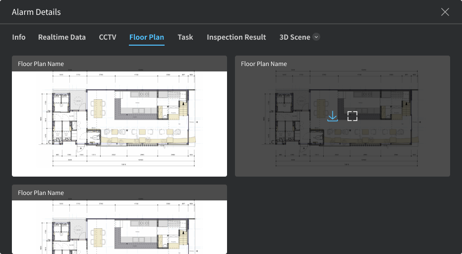 Displays the location of the alarming device on the floor plan, click the button to download or enlarge the floor plan.