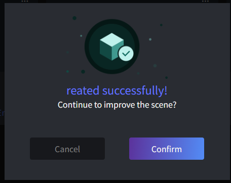 If creation is successful, a pop-up will appear asking if you want to continue improving the scene - confirm (add models immediately) or cancel (add models later).