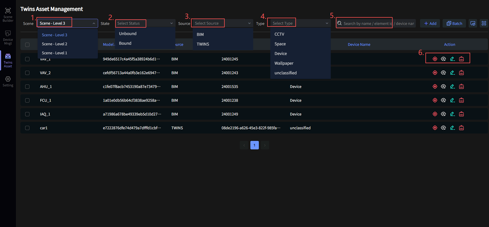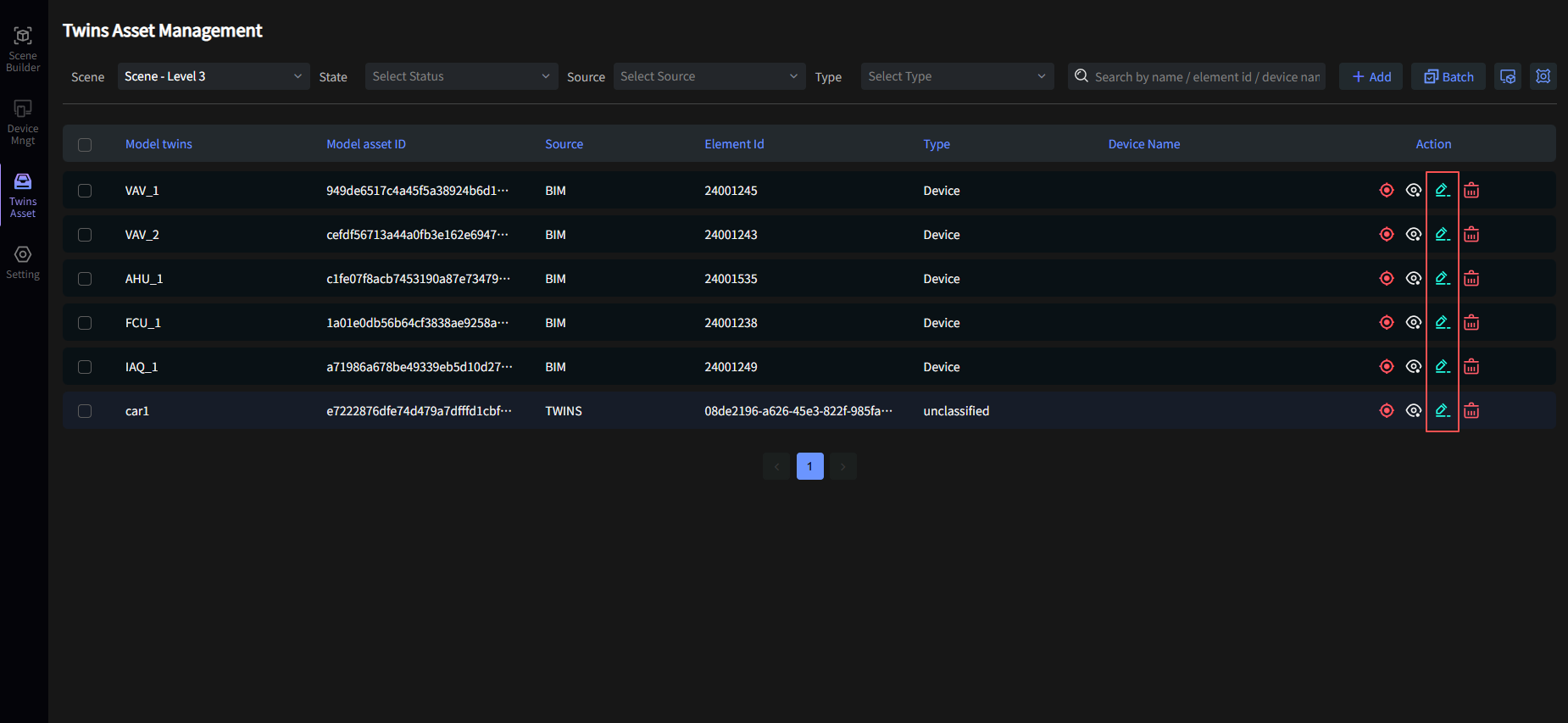 After entering the application, click "Twins Asset" in the left menu bar to view the Digital Asset Management page: