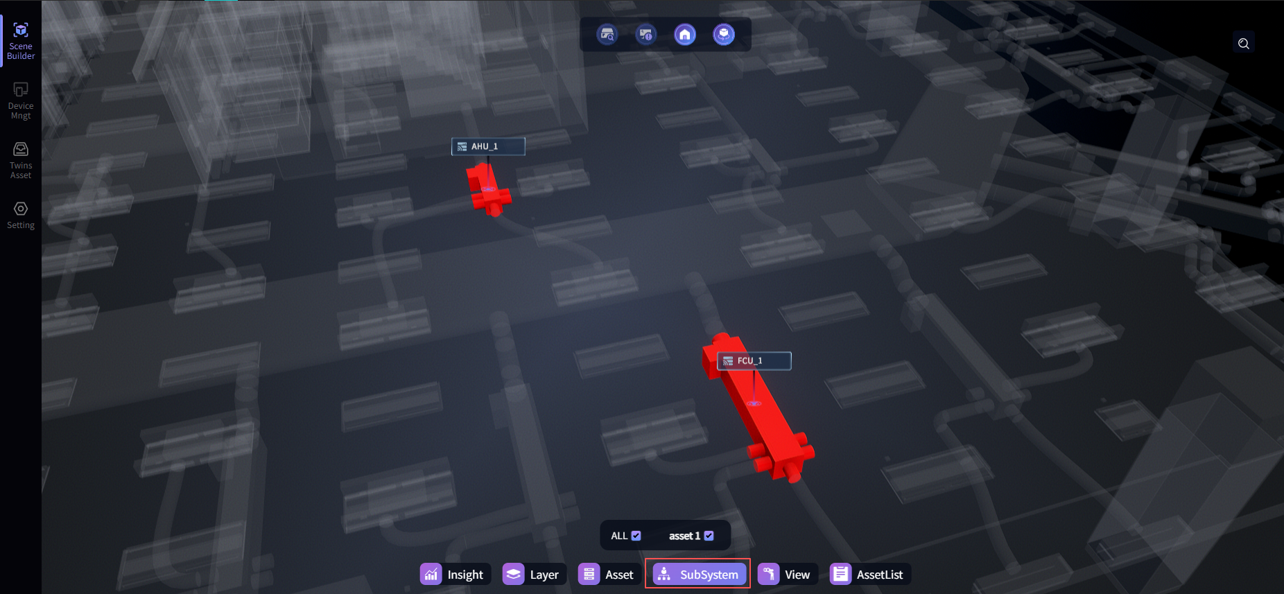 Assets bound to a subsystem can be viewed in the scene by checking the corresponding subsystem category.