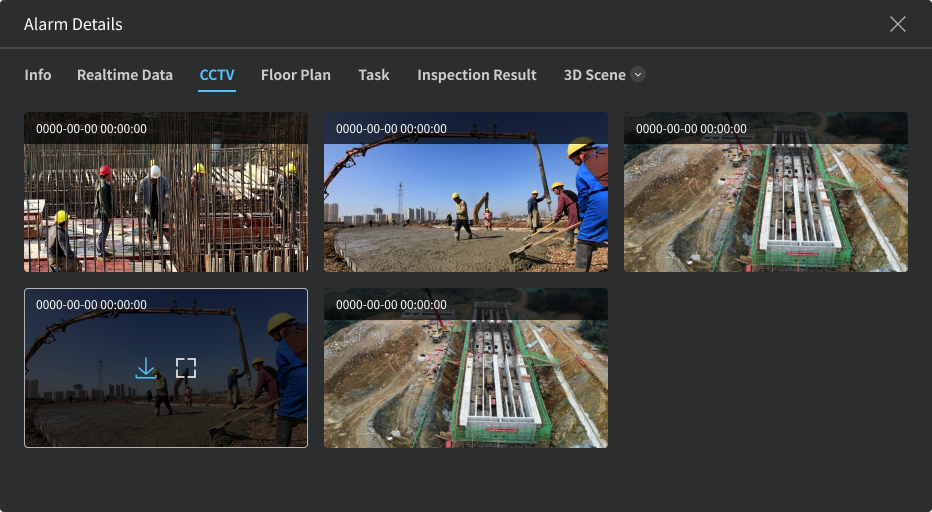 展示设备回放视频或截图,点击按钮可进行下载或放大视频/截图。
