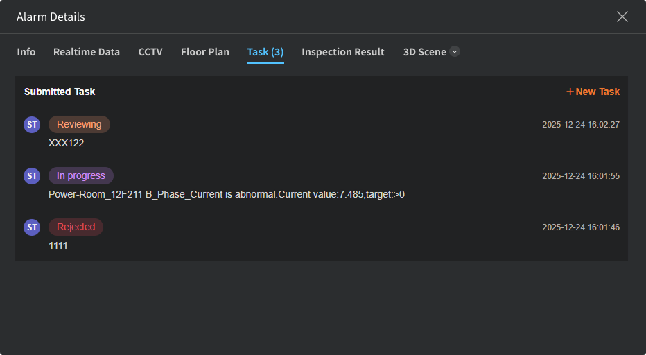 注意:当工单的状态为下图的其中一种时,才算完成发起工单这一工作。当存在多个工单的时候,需要全部完成才能对告警进行确认。