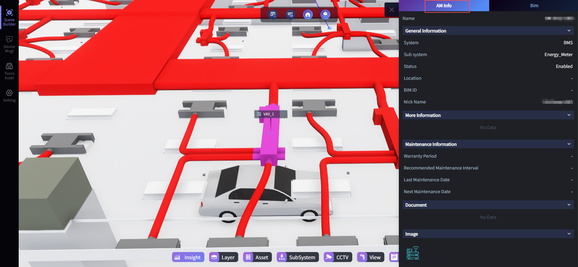 - 当绑定了AM的孪生资产,您可通过在场景中点击相关模型,在右侧列表查看AM详情信息;