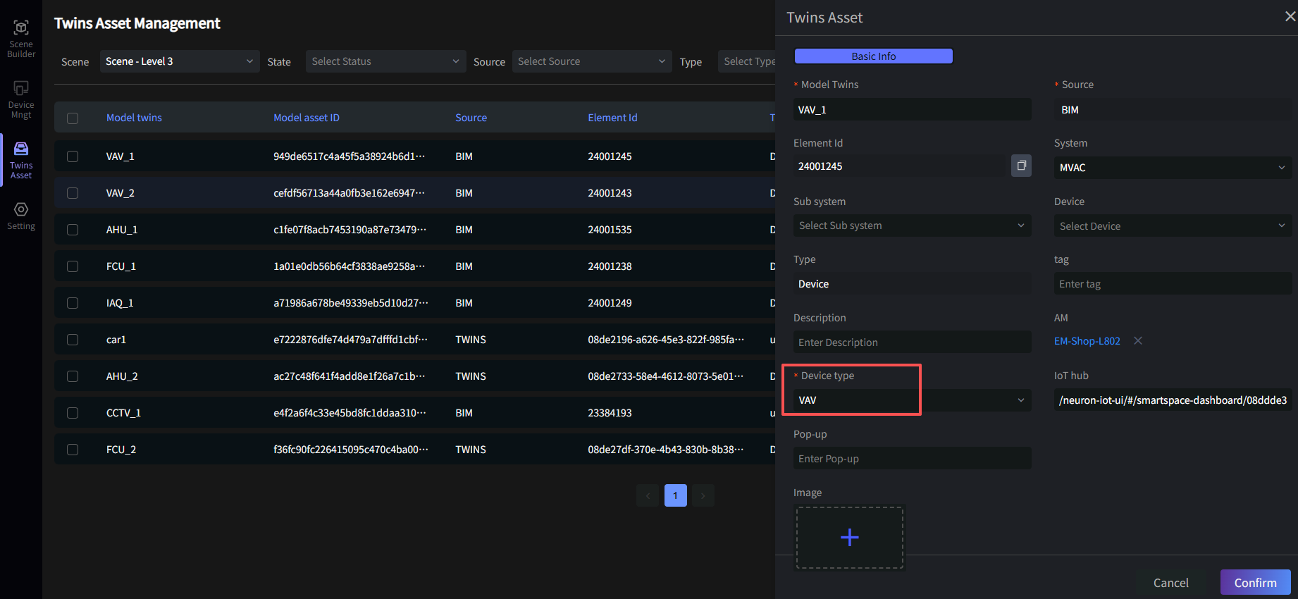 - Twins Asset Name: 用户自定,通常格式为"建筑名-楼层-系统-编号";