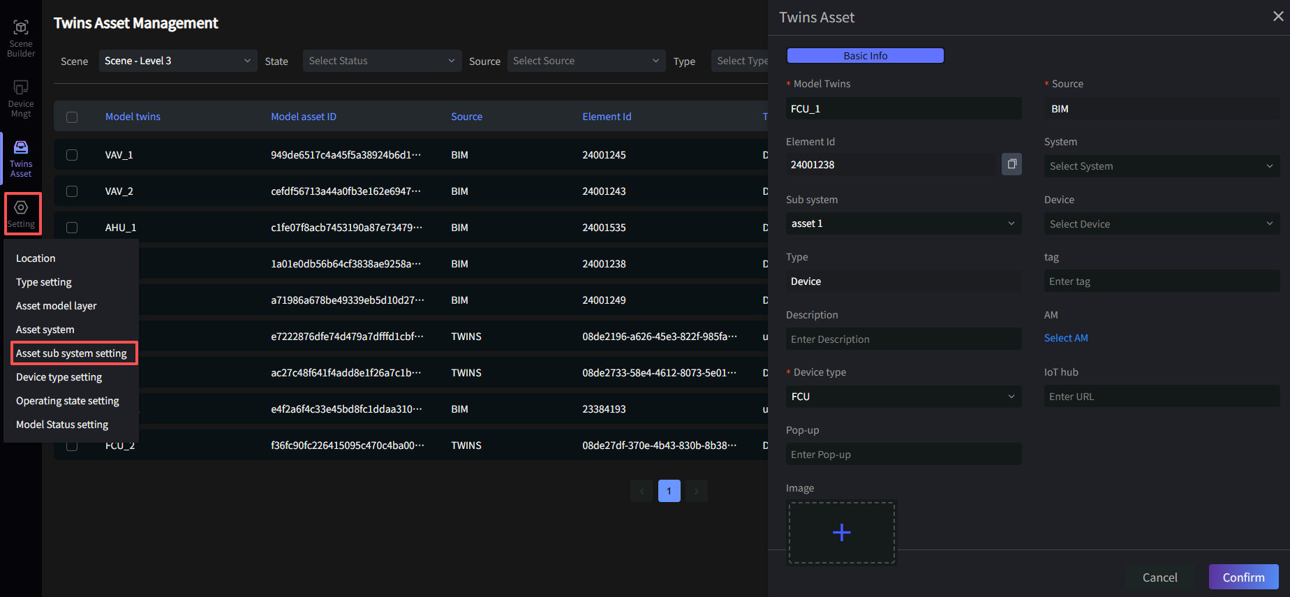 - Element Id:为孪生资产绑定模型,根据上文下载的BIM模型Element Id填入;