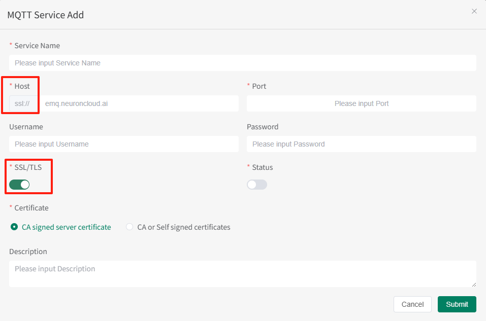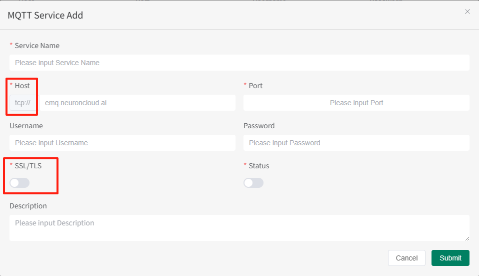 - 主機/端口:根據 MQTT 服務器的信息輸入,必填