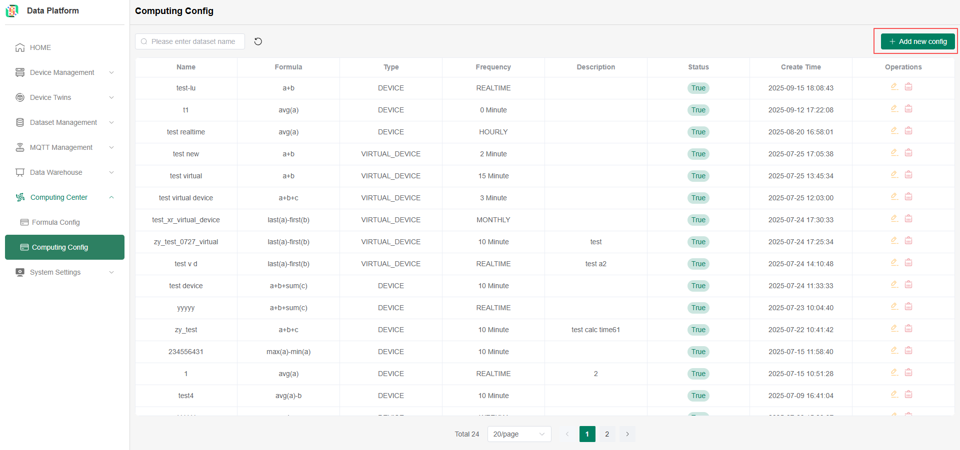 點擊「Computing Center」選單,點擊「Formula Config」按鈕,進入公式配置模組;