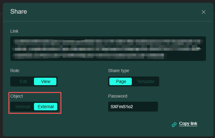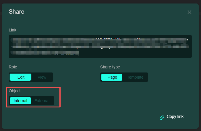 • 使用分享看板功能時,您可以選擇分享目前頁或者範本,分配權限(如,可編輯或僅檢視);另外需要注意以下: