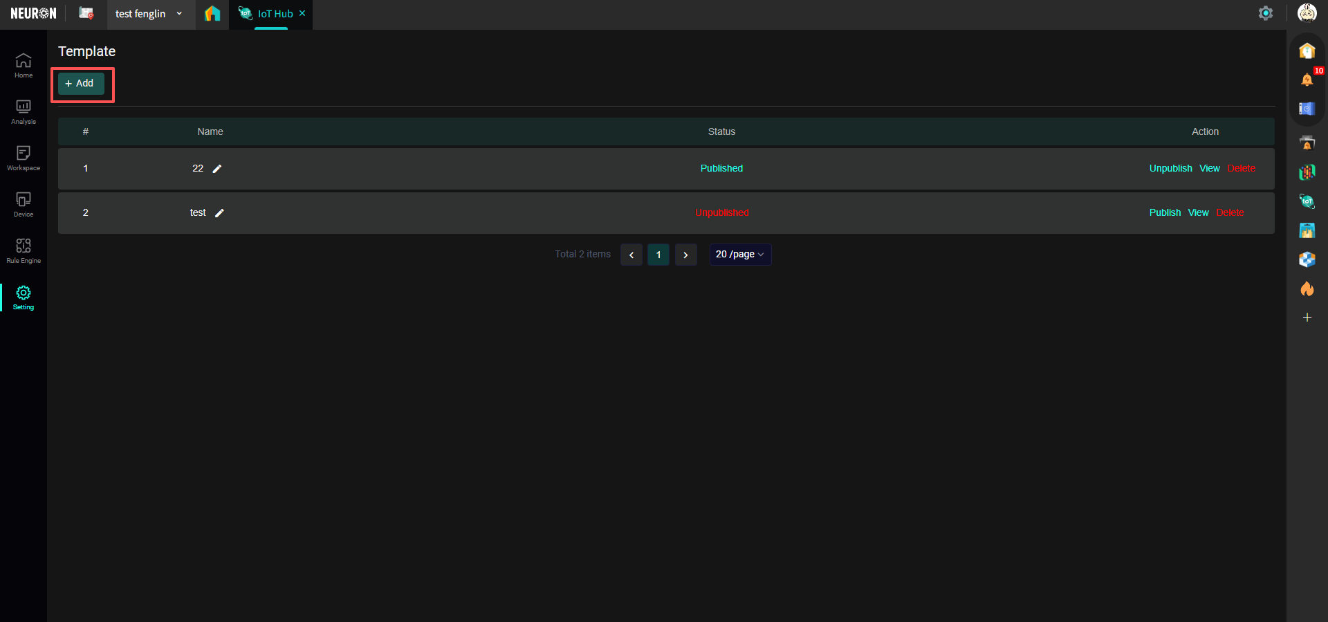 若使用的是接入 Neuron 資料中台的設備, 則在建立空間時資料來源應該選擇 Data Platform